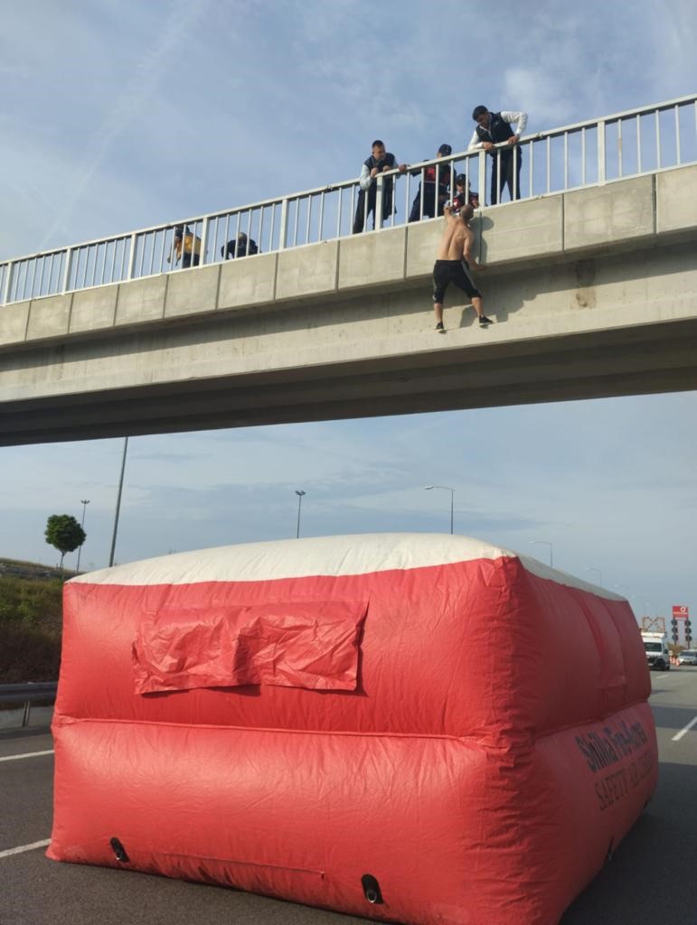 İtfaiye ekipleri de şahsın atlama ihtimali olan yere şişme yatak açtı. Aşağı atlayan şahıs, açılan şişme yatak sayesinde kurtuldu. Kısa süreliğine trafiğe kapatılan yol açılırken, jandarma ekiplerinin olayla ilgili tahkikatı sürüyor.