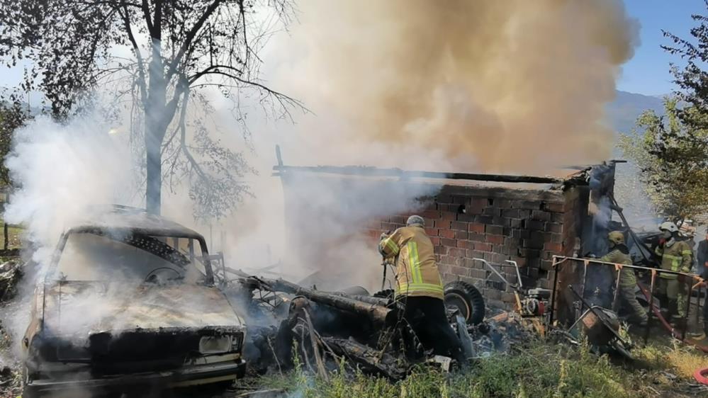 Yangın sonucu depo kullanılamaz hale geldi, otomobil de hurdaya döndü.