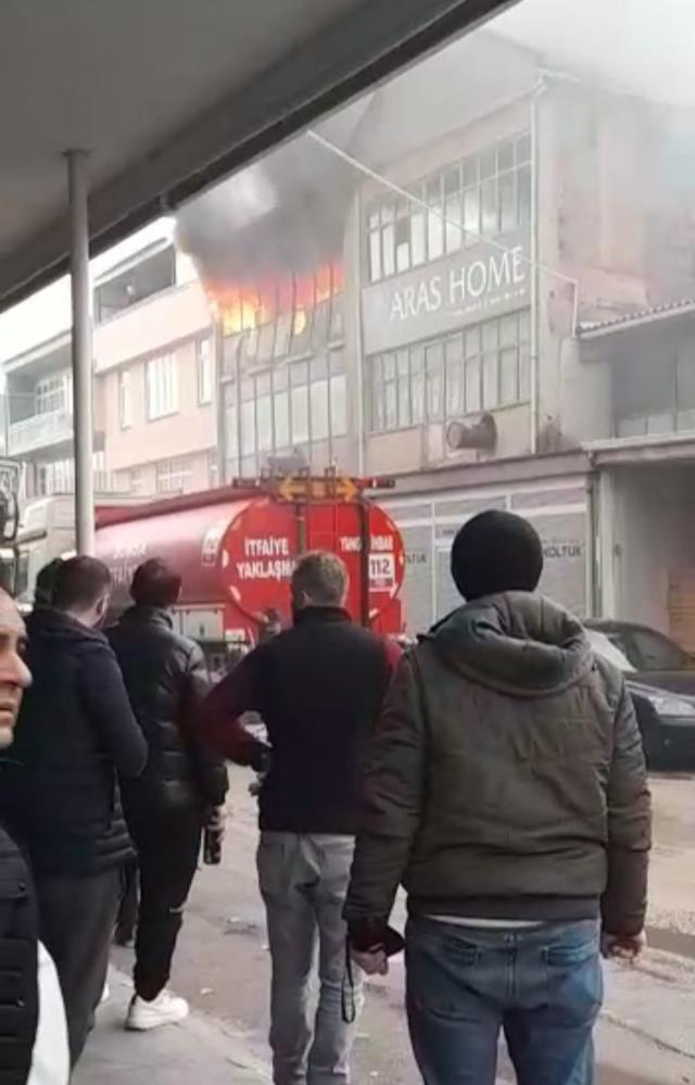 Mahmudiye Mahallesi 8. Mobilya Sokak’taki 3 katlı imalathanenin son katında bulunan boyahane bölümünde henüz bilinmeyen nedenle yangın çıktı.