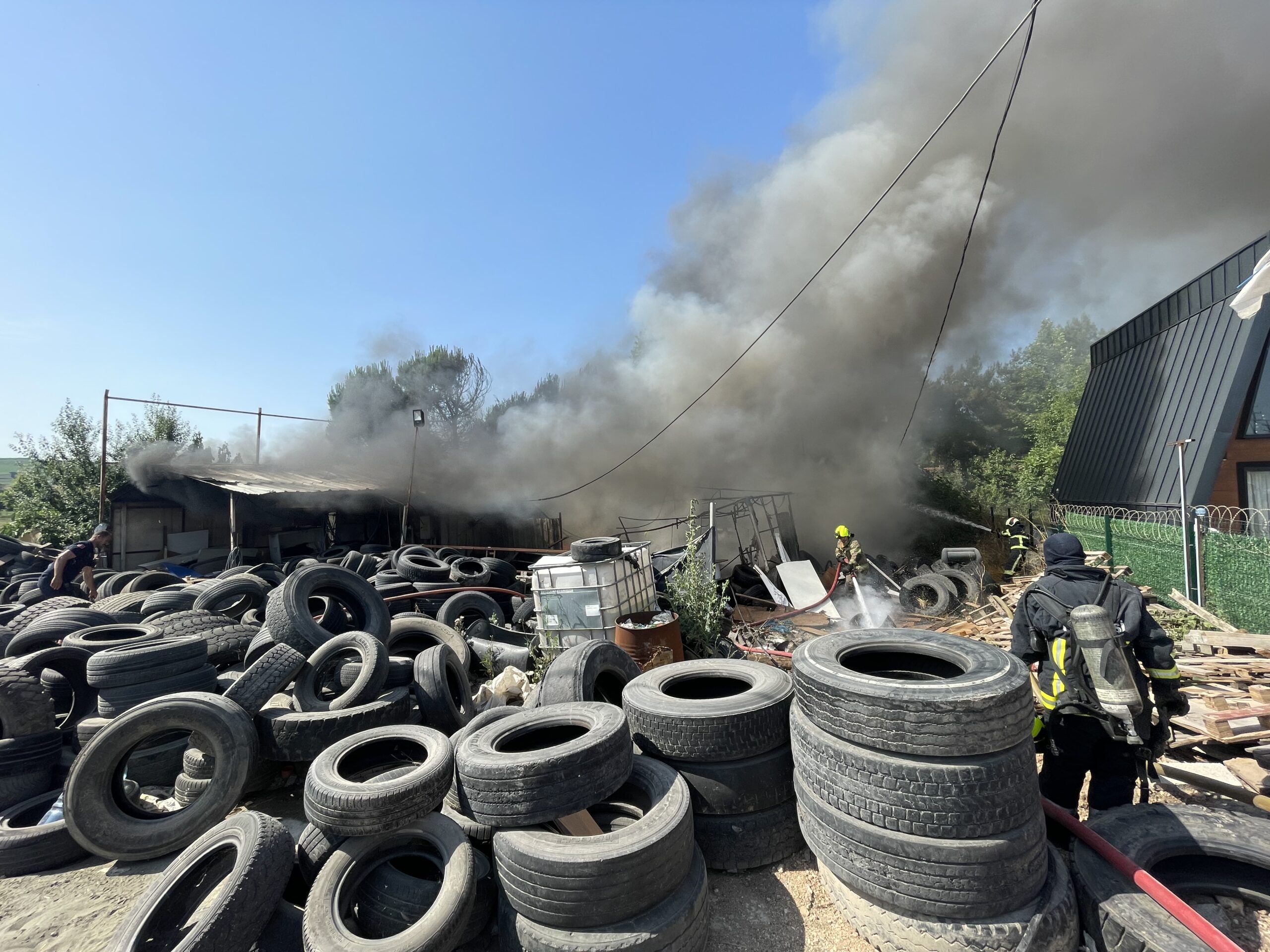 Bursa-İzmir karayolu İrfaniye Mahallesi’ndeki oto lastik tamircisinde henüz bilinmeyen nedenle yangın çıktı.