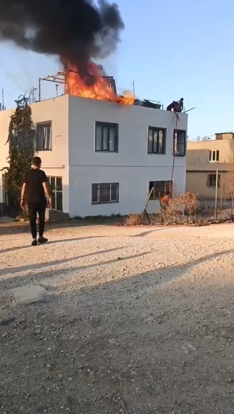 Bir evin çatı kısmındaki malzemeler alev aldı. Alevleri gören vatandaşların ihbarı üzerine olay yerine çok sayıda itfaiye sevk edildi.