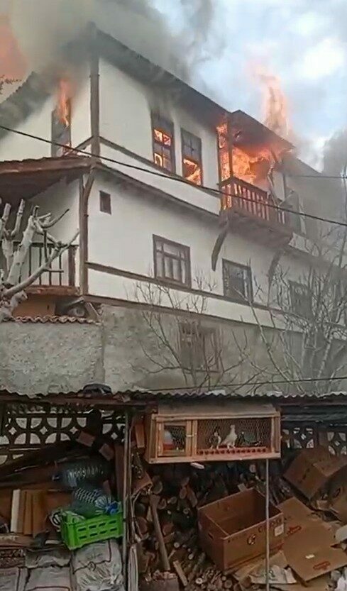 Bacada başlayan yangında alevler kısa sürede tüm evi sardı, dumanlar ilçenin birçok noktasından görüldü.