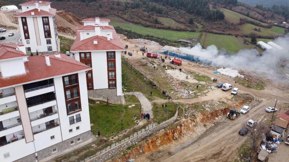 Edinilen bilgiye göre, inşa edilen toplu konutlarda çalışan işçilerin yatakhane olarak kullandığı prefabrik çadırda iddiaya göre elektrikli ısıtıcının devrilmesi sonucu yangın çıktı.