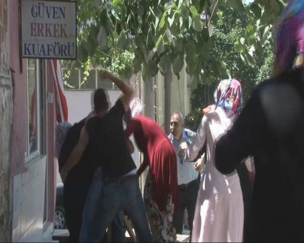 Bugün öğle saatlerinde yine aynı yerde toplanan köylü kadınlar yolu kesip yeniden eylem yapmak istedi. Ancak aynı köyde oturduğu belirlenen bir kişi kadınlara yaptıklarının yasal olmadığını hatırlatınca ortalık bir anda karıştı. Eyleme katılan kadınların eşleri tepki gösteren köylüye saldırdı. Tekme tokat yaşanan kavgayı olay yerindeki polis ekipleri uzun süre ayırmaya çalıştı. Eyleme başlamadan son vermek zorunda kalan köylü kadınlar da kavgaya karışan eşlerini sakinleştirmeye çalıştı.
