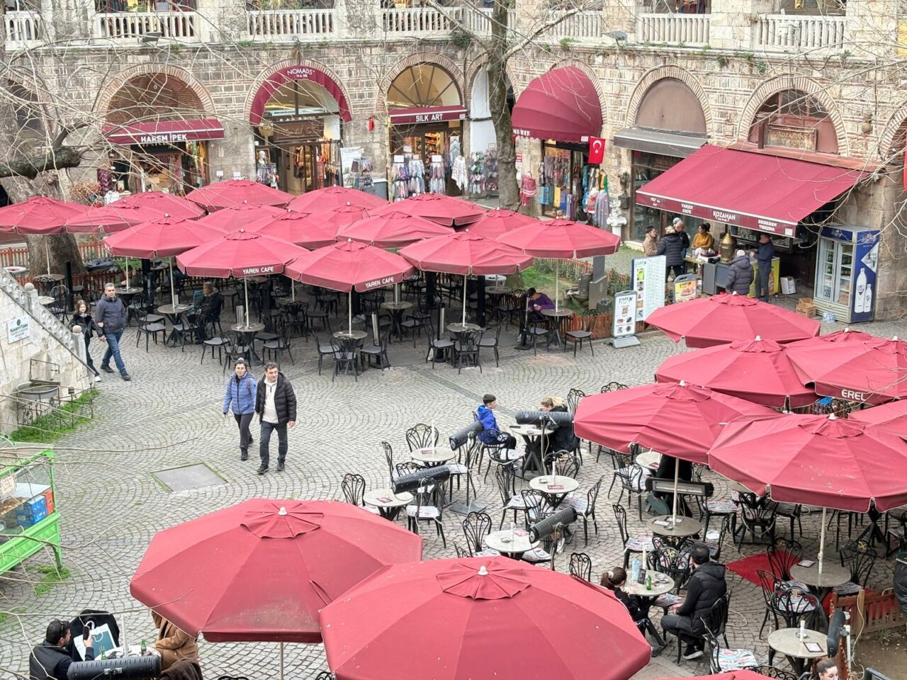 Ancak kararın sahaya yansıması sadece “kaldırma” tartışmasıyla sınırlı kalmadı. Masaların yeniden konulmasının önüne geçmek için avlunun belirli noktalarına turuncu dubalar ve demir bariyerler yerleştirildi. Bu görüntü, hem esnaf cephesinde hem de tarihi hanın müdavimleri arasında “Kozahan’a yakışmıyor” eleştirilerini beraberinde getirdi.