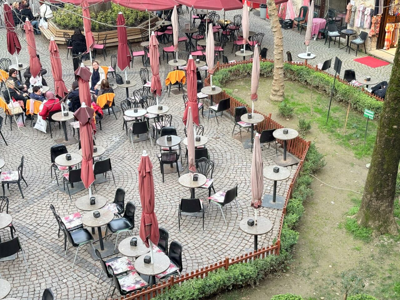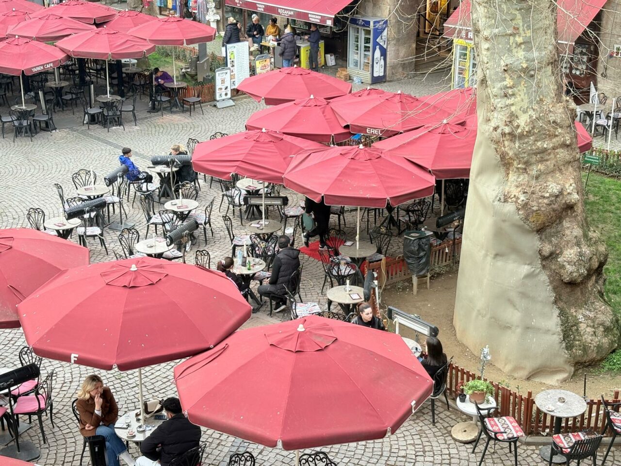 Gelinen noktada ise Kozahan’da en çok konuşulan ayrıntı, “masa-sandalye”den önce duba ve demirlerin kaldırılması oldu. Bariyerlerin sökülmesinin ardından avluya masa ve sandalyeler tekrar taşındı. Böylece son haftalarda sürekli değişen görüntü, bir kez daha başa sardı. Kozahan, ziyaretçilerin oturup soluklandığı, çayını kahvesini içtiği eski düzene geri döndü.