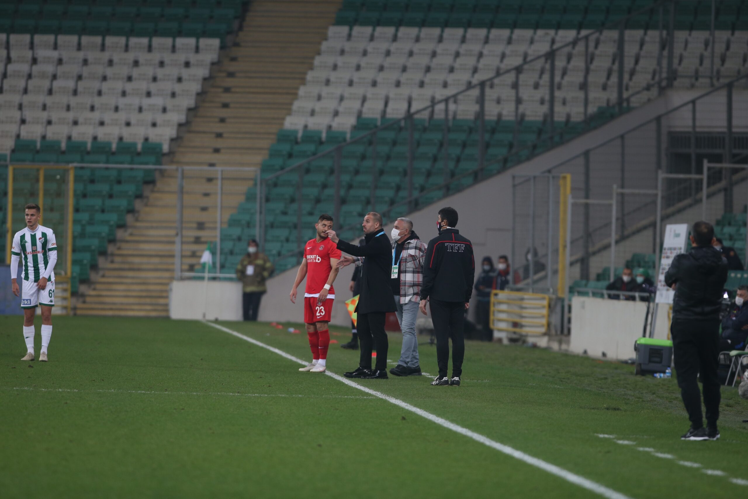 STAT: Bursa Büyükşehir Belediye HAKEMLER: Hakan Ceylan *, Baran Eraslan **, Gökmen Baltacı ** 4. HAKEM: Hasan Avcı BURSASPOR 1 M.Ataberk Dadakdeniz ** 2 İsmail Çokçalış * 4 Cüneyt Köz * 84 Ertuğrul Kurtuluş * 6 70 Ramazan Keskin * 3 Onur Atasayar * 36 Burak Altıparmak * 5 Emirhan Aydoğan * 17 Recep Aydın * 7 46 Burak Kapacak * 67 Kerem Şen * 10 32 Özer Hurmacı * 61 Batuhan Kör * 88 78 Berat Altındiş * 18 Ali Akman * YEDEKLER 28 Deniz Aydın 8 Ozan İsmail Koç 11 Çağatay Yılmaz 14 İsmail Can Çavuşluk 24 Kerem Kök 77 Tuğbey Akgün Teknik Direktör: Mustafa Er ÜMRANİYESPOR 61 Ahmet Eyüp Türkaslan ** 23 Alaaddin Okumuş *** 5 Alim Öztürk ** 44 Tomislav Glumac ** 55 Ercan Coşkun ** 8 Serkan Göksu ** 9 87 Hüseyin Çolak - 28 Hasan Batuhan Artarslan ** 12 Chukwuma Akabueze ** 92 78 Mustafa Murat Uslu * 19 Honore Gomis ** 7 65 Moussa Sow ** 69 Kevin Mayi ** 14 78 Turgut Doğan Şahin * 32 Ante Zivkovic ** 10 65 Okan Derici ** YEDEKLER 1 Mehmet Göktüğ Bakırbaş 17 Emirhan Çalışkan 15 Mustafa Can Karagöz Teknik Sorumlu: Recep Uçar GOLLER: Dk. 77 Emirhan Aydoğan (Bursaspor), Dk. 45+1 Alim Öztürk, Dk. 52 Tomislav Glumac, Dk, 82 Moussa Sow (Ümraniyespor) SARI KARTLAR: Dk. 17 Mustafa Er, Dk. 18 Emirhan Aydoğan, Dk. 28 Ertuğrul Kurtuluş, Dk. 60 İsmail Çokçalış, Dk. 67 Cüneyt Köz (Bursaspor)