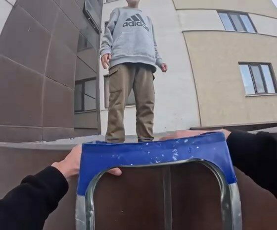 Kurye, önce siparişini teslim etti ardından çocuğu kaldığı yerden merdivenle kurtardı.