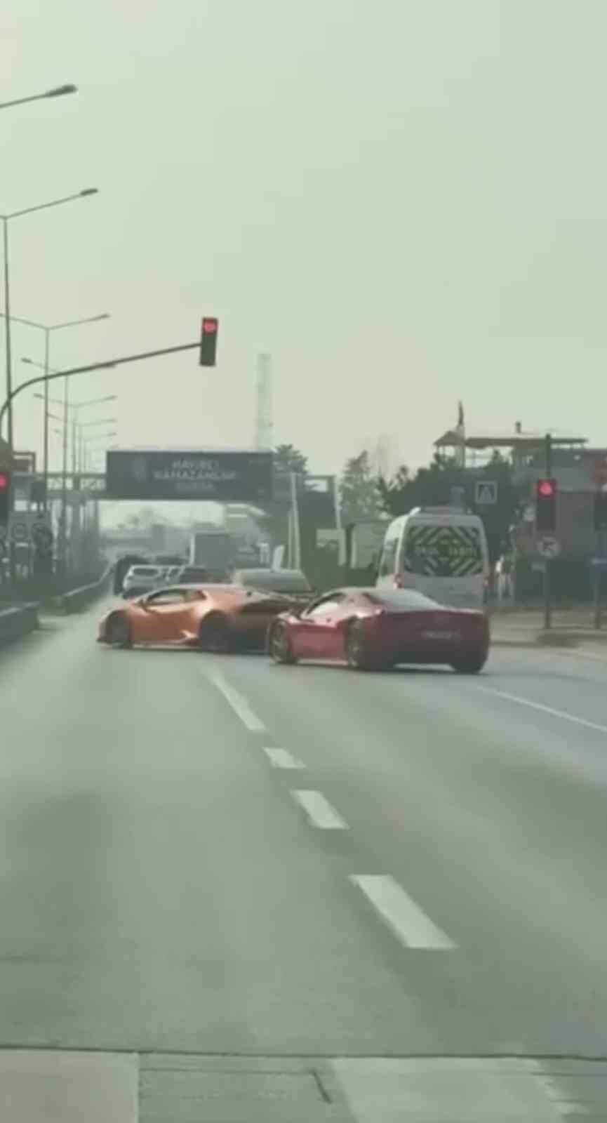 Olay, merkez Yıldırım ilçesi 11 Eylül Bulvarı’nda meydana geldi. Edinilen bilgiye göre, trafikte seyir halinde olan Lamborghini Huracan ve Ferrari marka iki spor otomobilin sürücüleri, ani şerit değiştirerek diğer araçların önüne geçti.