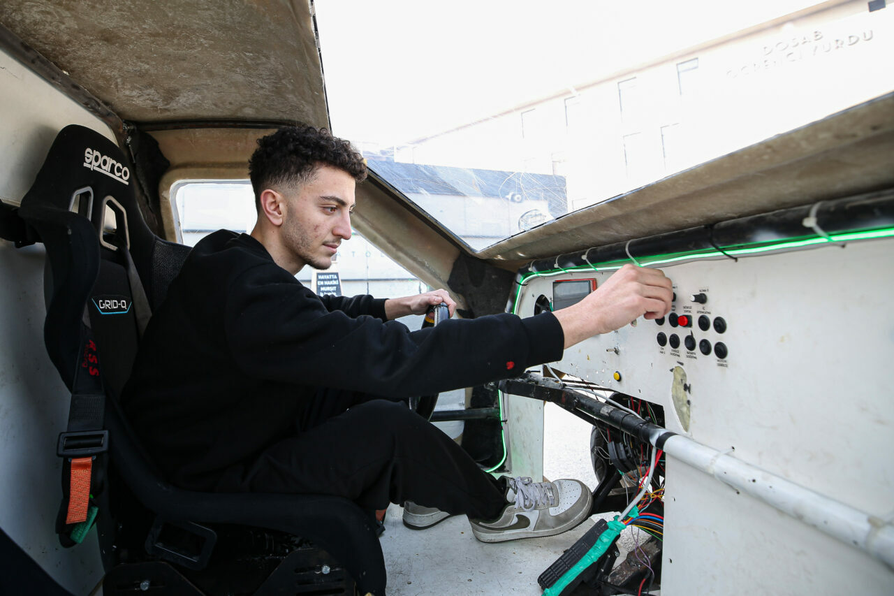 “Amacımız da zaten verimliliği yakalamak. Aynı zamanda aracımızın diğer elektronik sistemlerini de yerli olarak tasarlamaya çalışıyoruz. Bunları yaparken profesyonellerden destek almamaya çalışıyoruz. Elimizden geldiği kadar kendimiz araştırarak yapıyoruz. Bu süreçte 3 kart tasarladık. Aracı kilogram bazında hafifletip bataryaları küçülterek verimliliğini artırmak için çalışma yürütüyoruz.”
