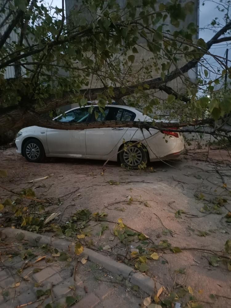 Bazı vatandaşlar yolda yürümekte zorluk çekerken bazı ağaçlar da park halindeki araçların üzerine devrildi.