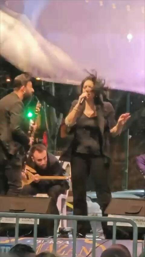 Lodos şiddetiyle birlikte konser alanının arkasındaki pankartı yırtarken sanatçı ve vatandaşlar ise sakinliğini korudu.
