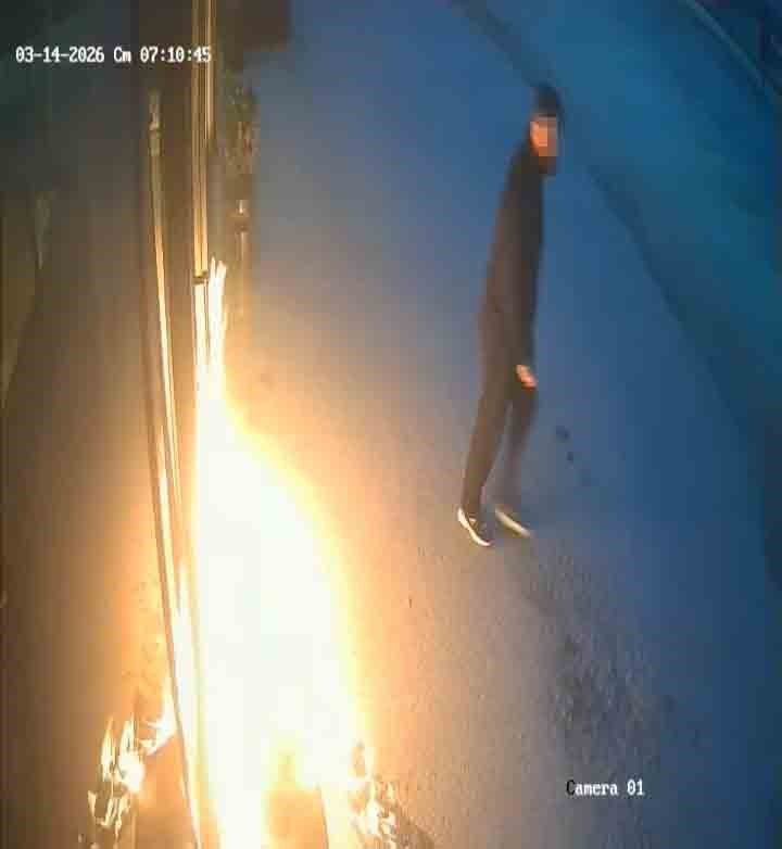 Öte yandan güvenlik kamerası görüntülerinde şüphelinin iş yerlerinin önüne gelerek benzin döküp ateşe verdiği anlar yer aldı.