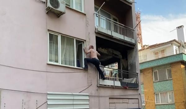 Alkollü olduğu iddia edilen Murat Taş, yarı çıplak halde balkona çıkarak mahalleliye küfretmeye başladı. Çevredekilerin ihbarı üzerine adrese sevk edilen polis ekipleri, eve girmek istedi. Buna izin vermeyip balkona çıkan Taş, polislere de küfür etti ve eşyaları dışarı attı.