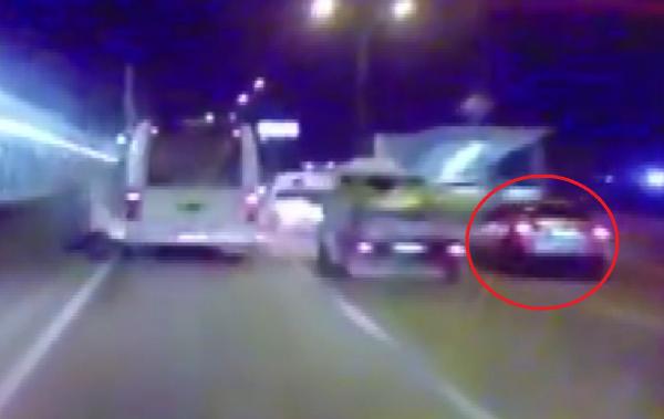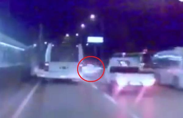Kaza yerine, çok sayıda polis ekibi sevk edildi. Yaralanan olmayan kaza, başka bir aracın kamerası tarafından saniye saniye görüntülendi.