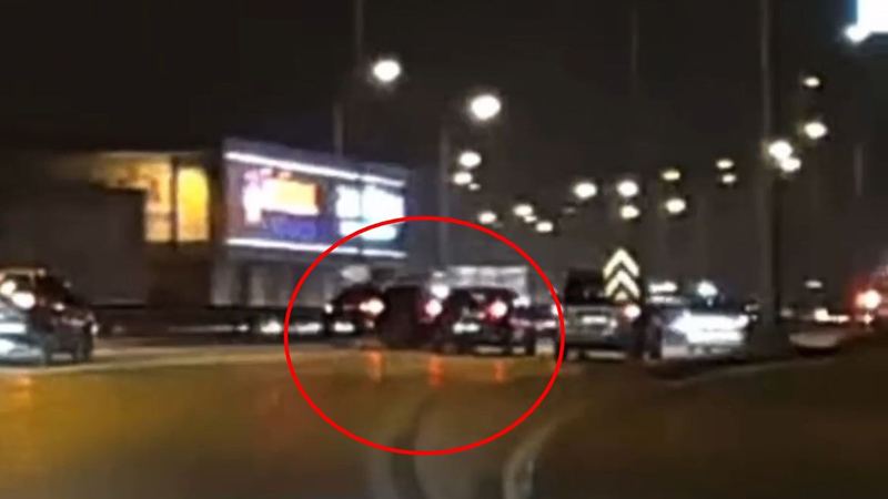 Öte yandan otomobil sürücüsünün makas attığı anlar, başka bir aracın kamerasına yansıdı. (DHA)