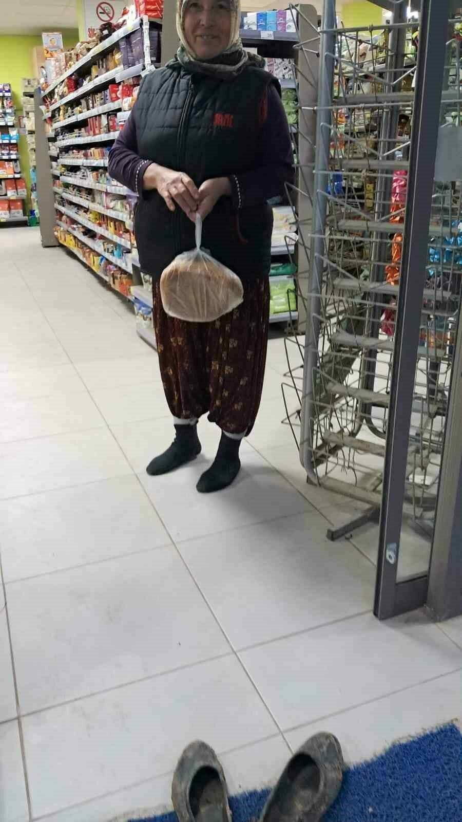 Market sahibi Ali Han Akın, “Ben rafları düzenliyordum. O esnada ayakkabılarını çıkardı, zeytin toplamaktan geldiğini söyledi. ’Yerler kirlenmesin’ diye çorapları ile markete girdi. Çok şaşırdık, kendisine teşekkür diyorum.”dedi.
