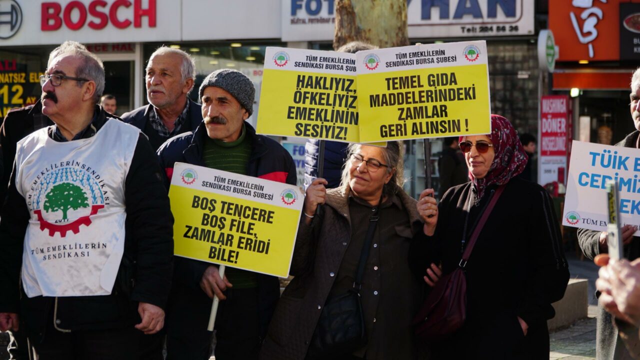 15 Temmuz Demokrasi Meydanı’nda toplanan emekliler de açıklanan zam oranına sert tepki gösterdi. Tüm Emekliler Sendikası Bursa Şube Başkanı Ensar Torun, düzenlediği basın açıklamasında emeklilerin açlık sınırında yaşamaya mahkûm edildiğini ve iktidarın yanlış politikalarına karşı sessiz kalmayacaklarını söyledi. TÜİK’in açıkladığı enflasyon rakamlarının gerçeği yansıtmadığını belirten Torun, “TÜİK tarafından düşük gösterilen enflasyon, maaşlarımızı açlık sınırının altına itiyor. Alım gücümüz her yıl düşüyor ve refah payımız hiç verilmiyor. Emekliler olarak bu tiyatroya kanmayacağımızı bir kez daha ilan ediyoruz. Bu tiyatroya kanmayacağız” dedi. Torun, hükümetin emeklilere yönelik politikalarını eleştirerek, “Emeklilere ayrılan pay 2019’da GSYH’nin yüzde 6,1’i iken bugün yüzde 4,4’e düşmüştür. Avrupa ortalaması yüzde 8’in üzerindeyken, biz ölüm sınırında yaşamaya mahkûm ediliyoruz. Ama bu kötülüğün hesabını gerek meydanlarda gerekse sandıkta soracağız” diye konuştu.