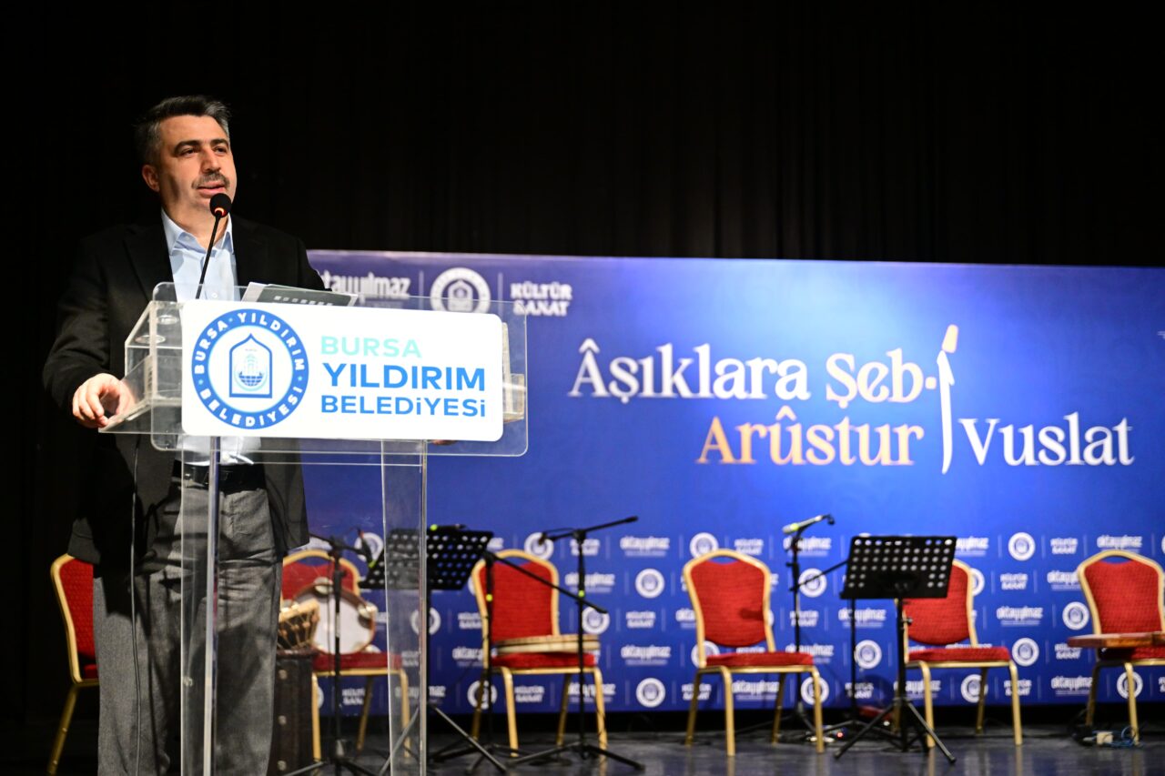Yıldırım Belediyesi, Hz. Mevlânâ’nın Hakk’a vuslatının 752’inci yıl dönümü dolayısıyla anma programı düzenledi. Barış Manço Kültür Merkezi’nde düzenlenen etkinliğe vatandaşlar yoğun ilgi gösterdi. Prof. Dr. Ekrem Demirli’nin konuşmasıyla başlayan program, Bursa Türk Müziği Topluluğu’nun Acembuselik Mevlevi Ayin-i Şerifi ile devam etti.