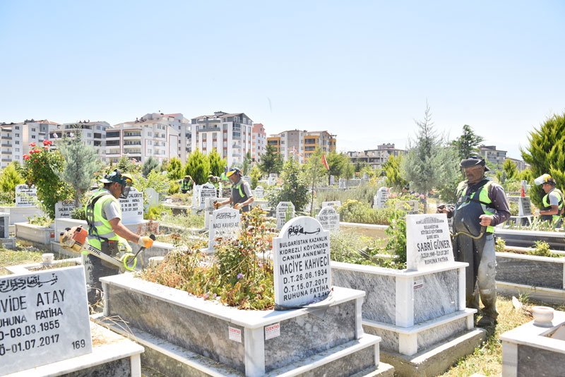 Büyükşehir Belediyesi Sağlık İşleri Dairesi Başkanlığına bağlı Mezarlıklar Şube Müdürlüğü, Kurban Bayramı’nda vatandaşların rahat ve huzurlu bir şekilde ziyaretlerini gerçekleştirebilmeleri için 17 ilçedeki 1058 mahalle mezarlığında kapsamlı bir temizlik çalışması başlattı. Çalışmalar kapsamında 17 ilçede yaklaşık 12 milyon metrekare alanı kaplayan 1300 mezarlıkta, mezarlar arasındaki yürüyüş alanlarını kaplayan otlar, 150 personelin hummalı çalışmasıyla temizlendi. Kuruyan ağaçlar söküldü, mevcut ağaçlarda budama işlemleri tamamlandı. 150 civarında mezarlığın duvar ve telleri yapılırken, diğer mezarlıklardaki duvar ve tel çalışmaları devam ediyor. Ayrıca mezarlığın içerisinde çeşme, yol, mezarlık kapısı ve malzeme deposu olmayanların eksiklikleri gideriliyor. Mezarlık alanları biten mahallelerin mezarlıklarının bitişiğindeki devlete ait araziler ise gerekli yazışmalar neticesinde müsait olanlar mezarlıklara dâhil ediliyor.