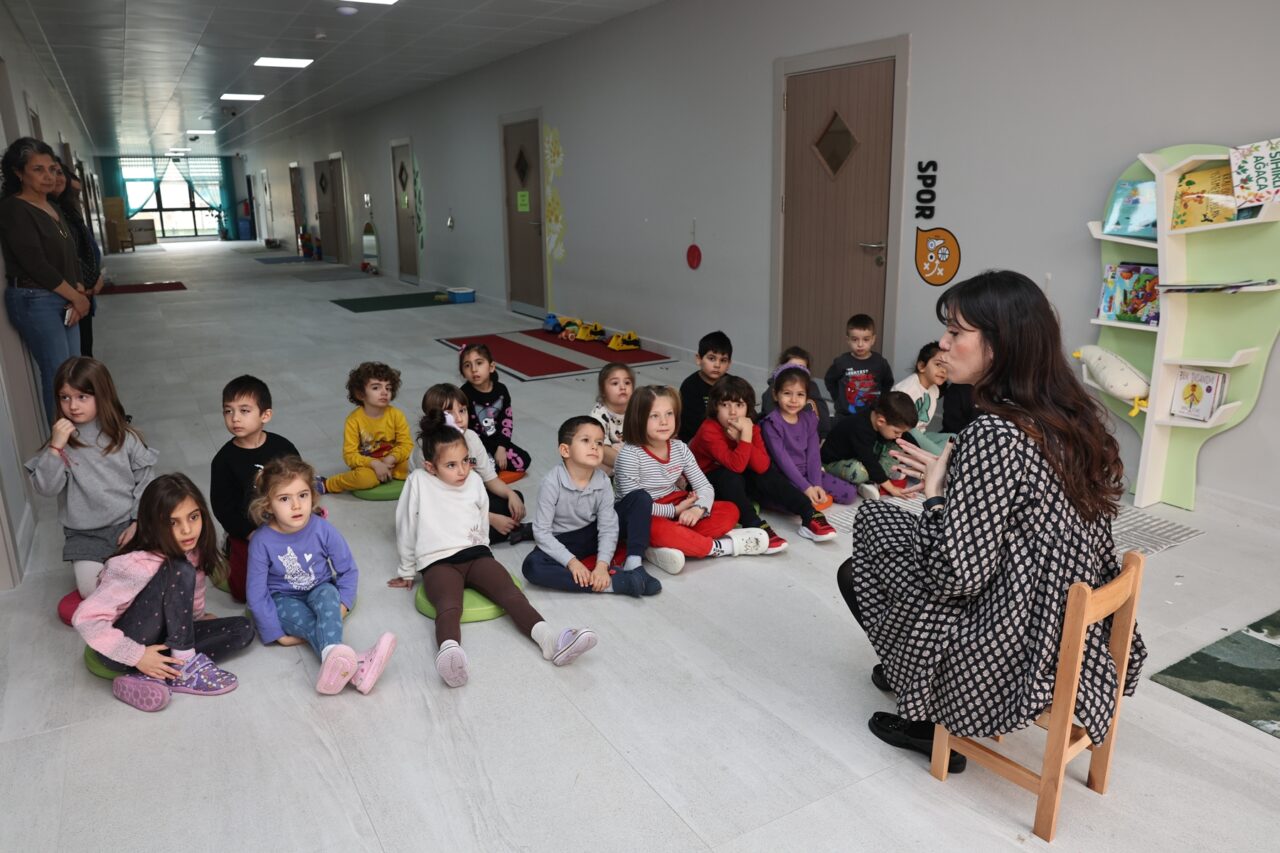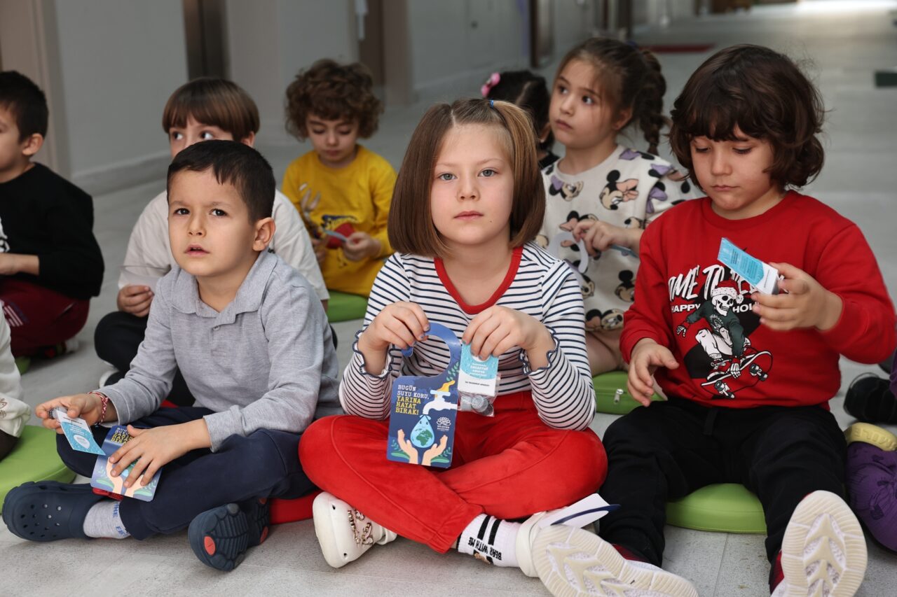 Nilüfer Belediyesi İklim Değişikliği ve Sıfır Atık Müdürlüğü’nden biyolog Melahat Kaynak ve çevre mühendisi Ufuk Ekinci, çocuklara su kaynaklarını koruma, bilinçli su tüketimi ve su tasarrufu alışkanlığı kazanmaları konusunda bir sunum gerçekleştirdiler. Biyolog Melahat Kaynak “Küçük Yağmur Damlası” kitabından kesitler okuyarak, çocuklara günlük hayatta su tasarrufu konusunda pratik bilgiler de sundu.