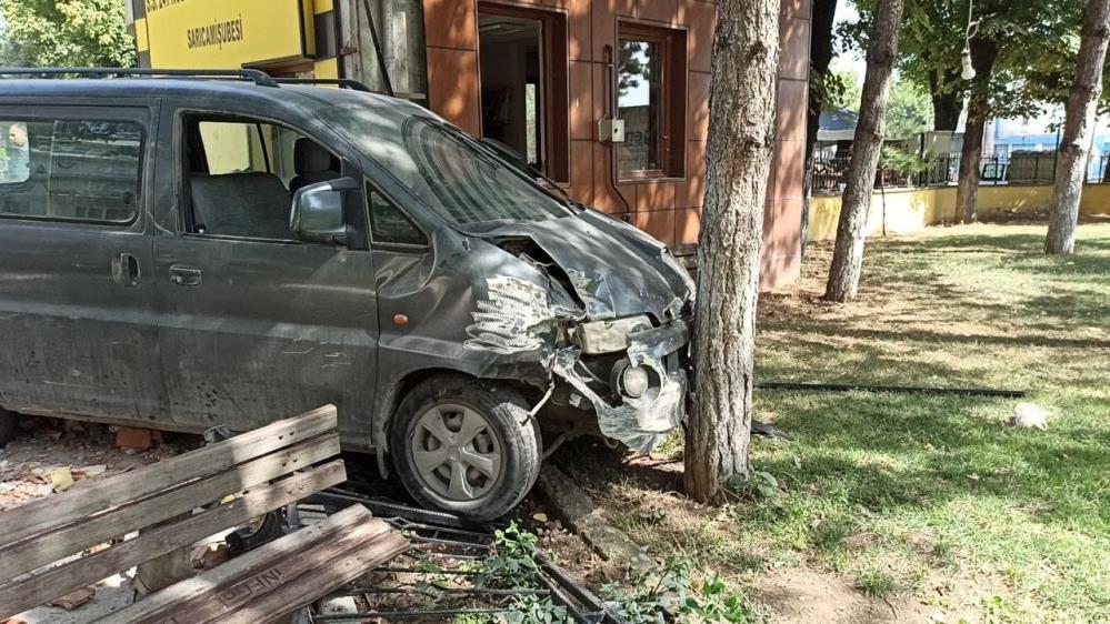 Trafik levhasına çarpan araç, hızlanarak Sarı Cami duvarını yıkıp avluya daldı. Ağaca çarparak duran araçtaki sürücüsü, kazayı yaralanmadan atlattı.
