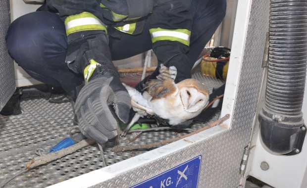 Merdivenli itfaiye aracının köprü üzerine kurulmasıyla birlikte itfaiye erleri yaralı baykuşu takıldığı yerden kurtardı. Kanadı kırılan baykuş İnegöl Belediyesi Sahipsiz Hayvan Bakım ve Tedavi Merkezi’ne götürüldü.