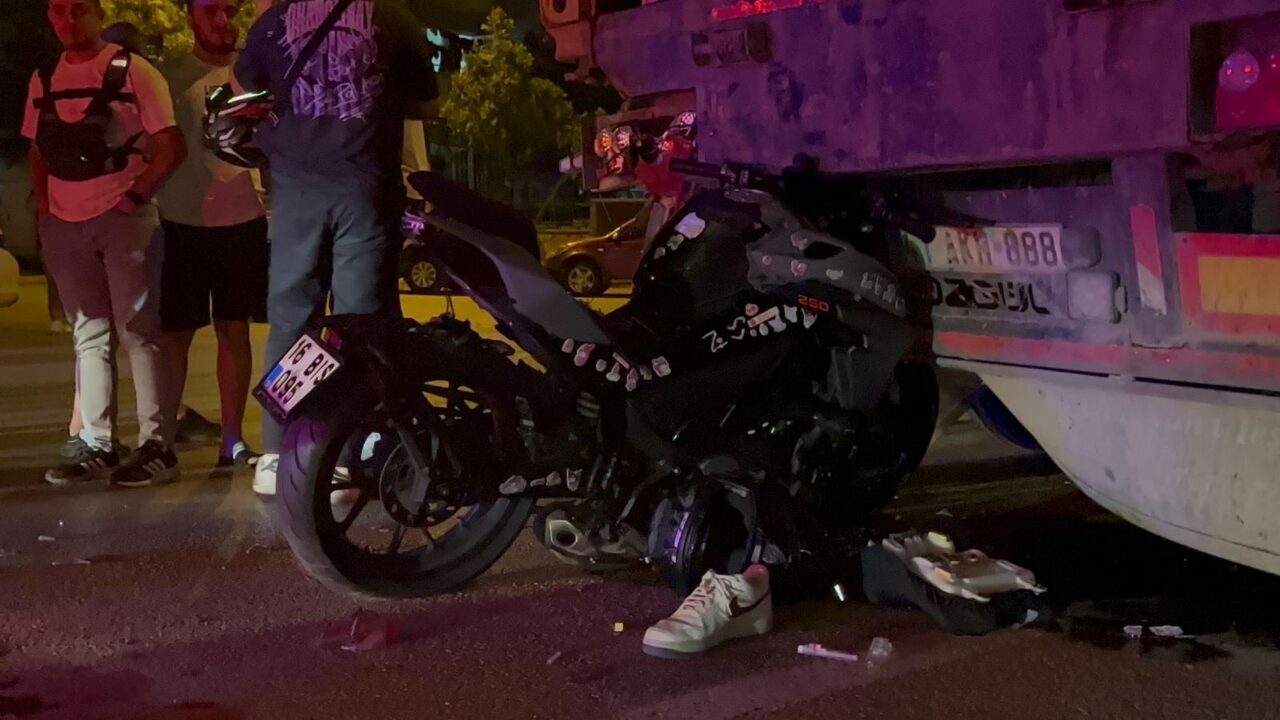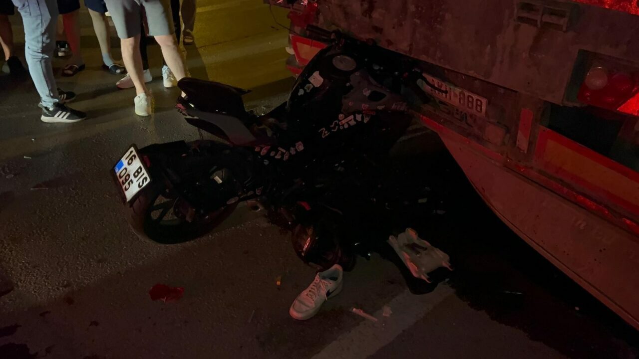 Kaza, saat 22.00 sıralarında Yıldırım ilçesi 75. Yıl Mahallesi Erdoğan Caddesi üzerinde meydana geldi. Şehir merkezi istikametine seyir halinde olan Furkan Tigit (20) yönetimindeki 16 BIS 095 plakalı motosiklet, sürücüsünün kontrolünden çıkarak park halinde 41 AKH 888 plakalı TIR’a arkadan çarptı. Kazada motosiklet sürücüsü Furkan Tigit ile arkasındaki yolcu Emir K. ağır yaralandı.