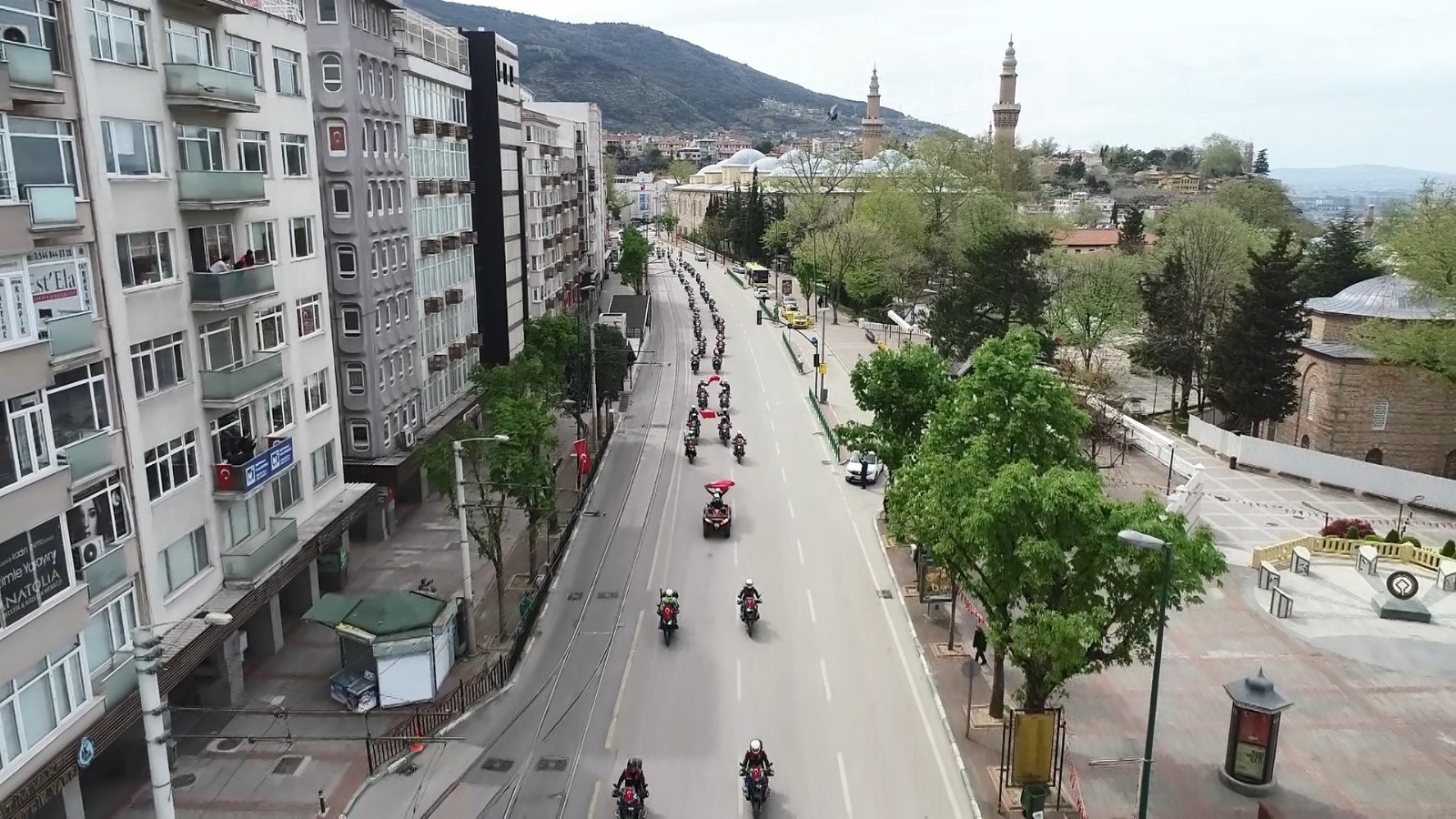 Bursa’da motosikletli polis ekipleri, 23 Nisan’a özel şehir turu attı.