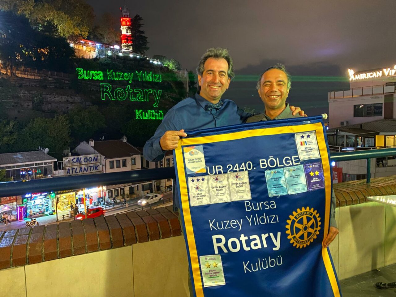 2440 Rotay Bölge’ye bağlı Bursa Kuzey Yıldızı, Çekirge, Nilüfer ve Bandırma Rotary Kulüpleri tarafından “Dünya Barış ve Anlama Günü” kapsamında toplumda farkındalık yaratmak amacı ile Zafer Plaza’dan Tophane sırtlarına lazer ile yansıtılan Atatürk’ün barış ile ilgili özlü sözleri ve Rotary logo görselleri çevreden geçen halk tarafından ilgiyle izlendi.