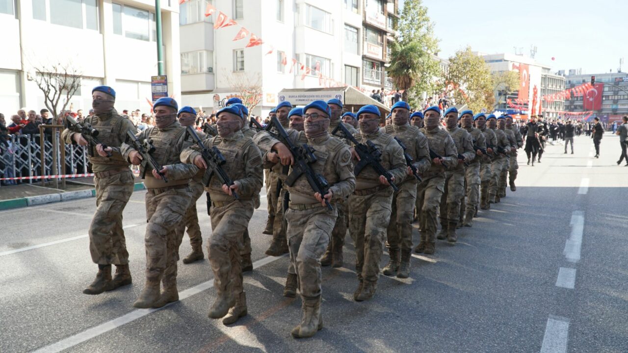 Tören, Bursa Valiliği önünde düzenlenen resmi programla başladı. Komandoların kortej geçişi sırasında caddede yankılanan adım sesleri, marşlarla birleşince Bursa adeta Cumhuriyet coşkusuna büründü. Vatandaşlar, askerlere uzun süre ayakta alkışlarla eşlik etti.