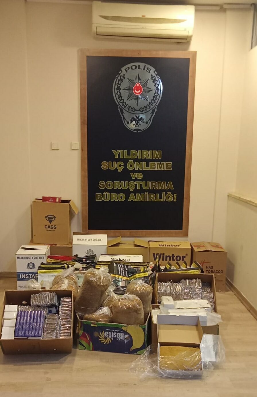 Otomobilde yapılan aramalarda 47 kilo 480 gram kıyılmış tütün, 36 kilo 650 gram bandrollü tütün, 74 bin 800 boş makaron ve 11 bin 240 dolu makaron ele geçirildi.