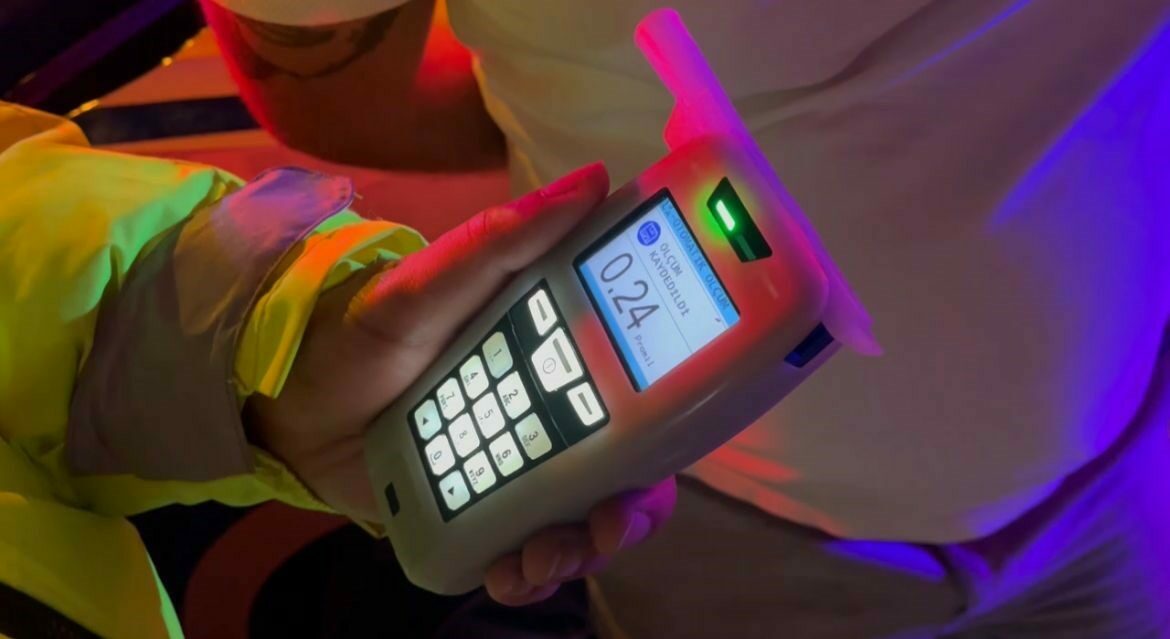 Alkolmetreyi üfleyen U.A., 0.24 promil alkollü çıktı.