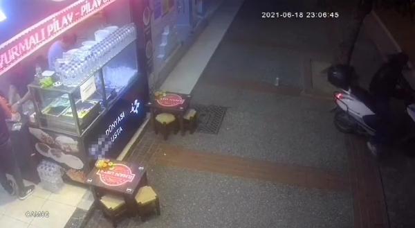 Kimliği henüz belirlenemeyen kişi, pilav satılan iş yerinin önüne geldi. Elindeki içki kutusunu yere bırakan hırsızlık şüphelisi, 16 CEP 95 plakalı motosiklete yöneldi. Motosiklete binen şüpheli, iş yeri çalışanlarına aldırış etmeden motosikleti çalıştırarak, ilerledi. Motosikletin gittiğini fark eden iş yeri çalışanı ise peşinden koştu ancak yetişemedi. Sahibinin şikayeti üzerine polis ekipleri, motosikleti tespit etmek için çalışma başlattı.