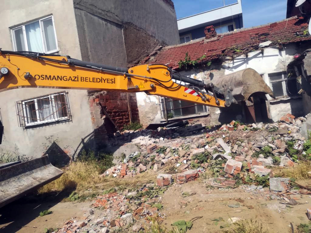 Osmangazi Belediyesi, ilçe sınırları içerisinde bulunan, emniyet ve sağlık açısından risk oluşturan metruk binaların yıkımını sürdürüyor.