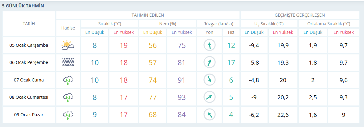 Bursa’da önümüzdeki 5 gün için tahmin edilen hava raporu şöyle;