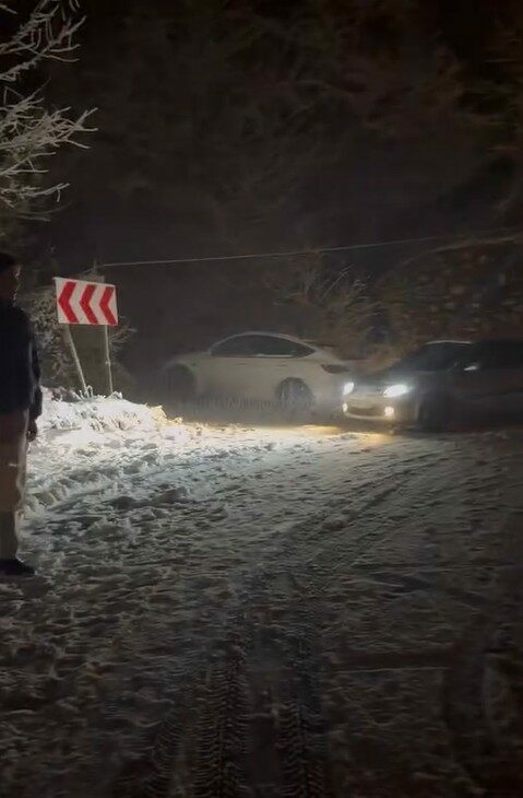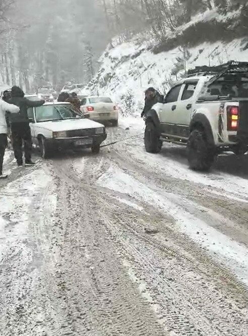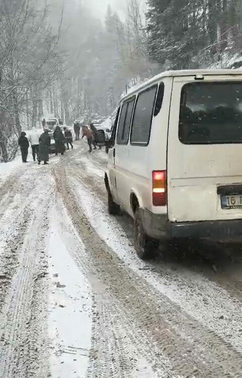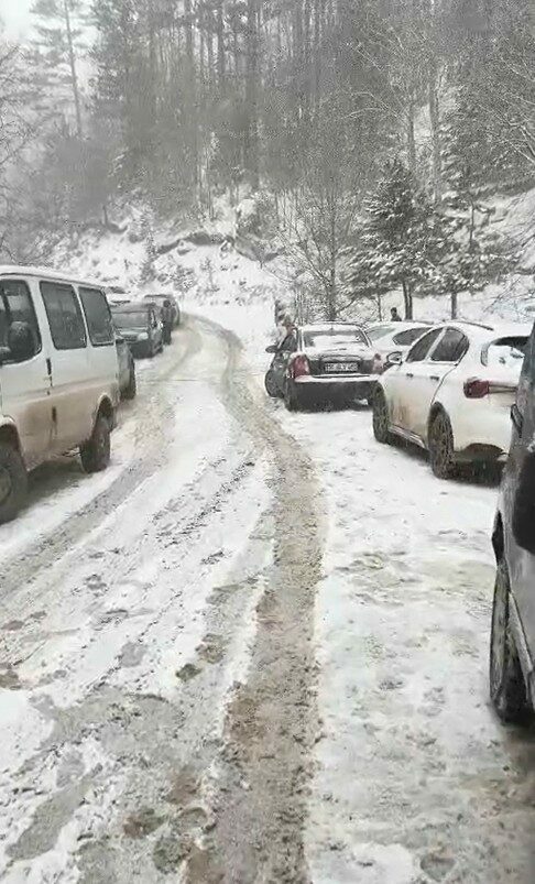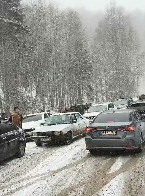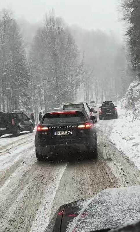 Öte yandan Uludağ’a gidemeyen bazı vatandaşlar da Çayyaka Mahallesi’nin yüksek kesimlerinde bulunan Boğazova mevkisine giderek karın tadını çıkarmak istedi. Uzun araç kuyruğu oluşurken, araçlarında kış lastiği olmayan sürücüler ise mahsur kaldı. İnegöl İlçe Jandarma Komutanlığı ekipleri, bölgede trafiği kontrollü olarak sağlıyor. (DHA)