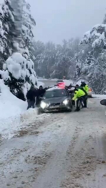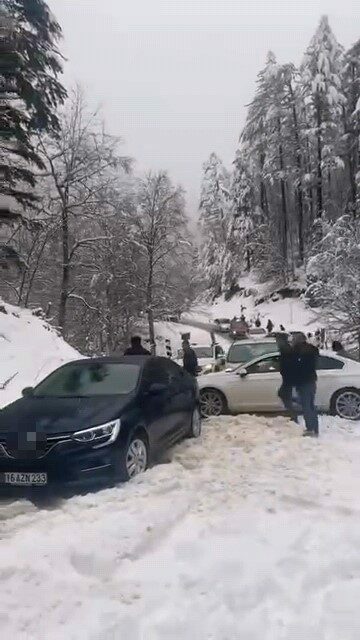 İnegöl’ün Çayyaka Mahallesi Boğazova bölgesine kar sevinci yaşamak için çıkan bazı sürücüler yolda mahsur kaldı.