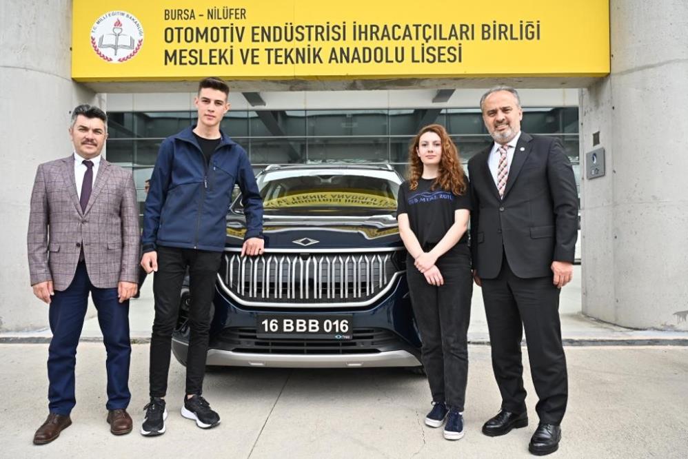 Bursa Büyükşehir Belediyesi Başkanı Alinur Aktaş, makam aracı 16 BBB 016 plakalı yerli otomobil Togg ile öğrencilere verdiği sözü tuttu.