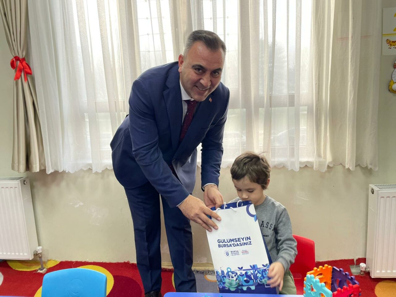 Bursa Büyükşehir Belediye Başkanı Mustafa Bozbey’i temsilen Büyükşehir Belediyesi Başkanvekili Mehmet Aydın Saldız da Şerife Bacı Özel Eğitim Anaokulu’nu ziyaret ederek öğrencilerin karne sevincine ortak oldu. Törene, Bursa Valisi Erol Ayyıldız, İl Milli Eğitim Müdürü Gürhan Çokgezer, Osmangazi Kaymakamı Ali Partal ve belediye başkanları da katıldı. Öğrenciler tarafından hazırlanan sergiyi de gezen Başkanvekili Saldız, öğretmenlerle sohbet ederek, çocuklara karne hediyesi dağıttı.