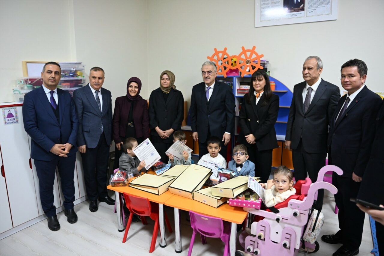 Bursa Valisi Erol Ayyıldız ve il protokolü, Şerife Bacı Özel Eğitim Anaokulu öğrencilerinin karne dağıtım törenine katılarak öğrencilerin heyecanına ortak oldu. 2025-2026 Eğitim Öğretim Yılı birinci dönemi boyunca öğrenciler tarafından hazırlanan etkinliklerin sergilendiği alanı ziyaret eden Vali Ayyıldız ve beraberindeki protokol, özel eğitim okulu öğrencilerine karnelerini takdim etti ve iyi bir tatil geçirmeleri temennisinde bulundu.