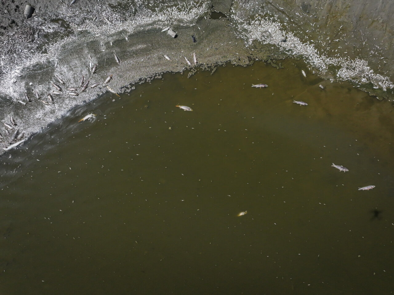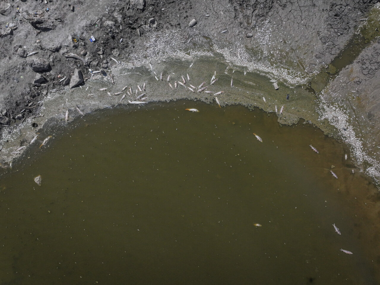 Neredeyse kuruma noktasına gelen göletteki azalan su nedeniyle balık ölümleri yaşanıyor.