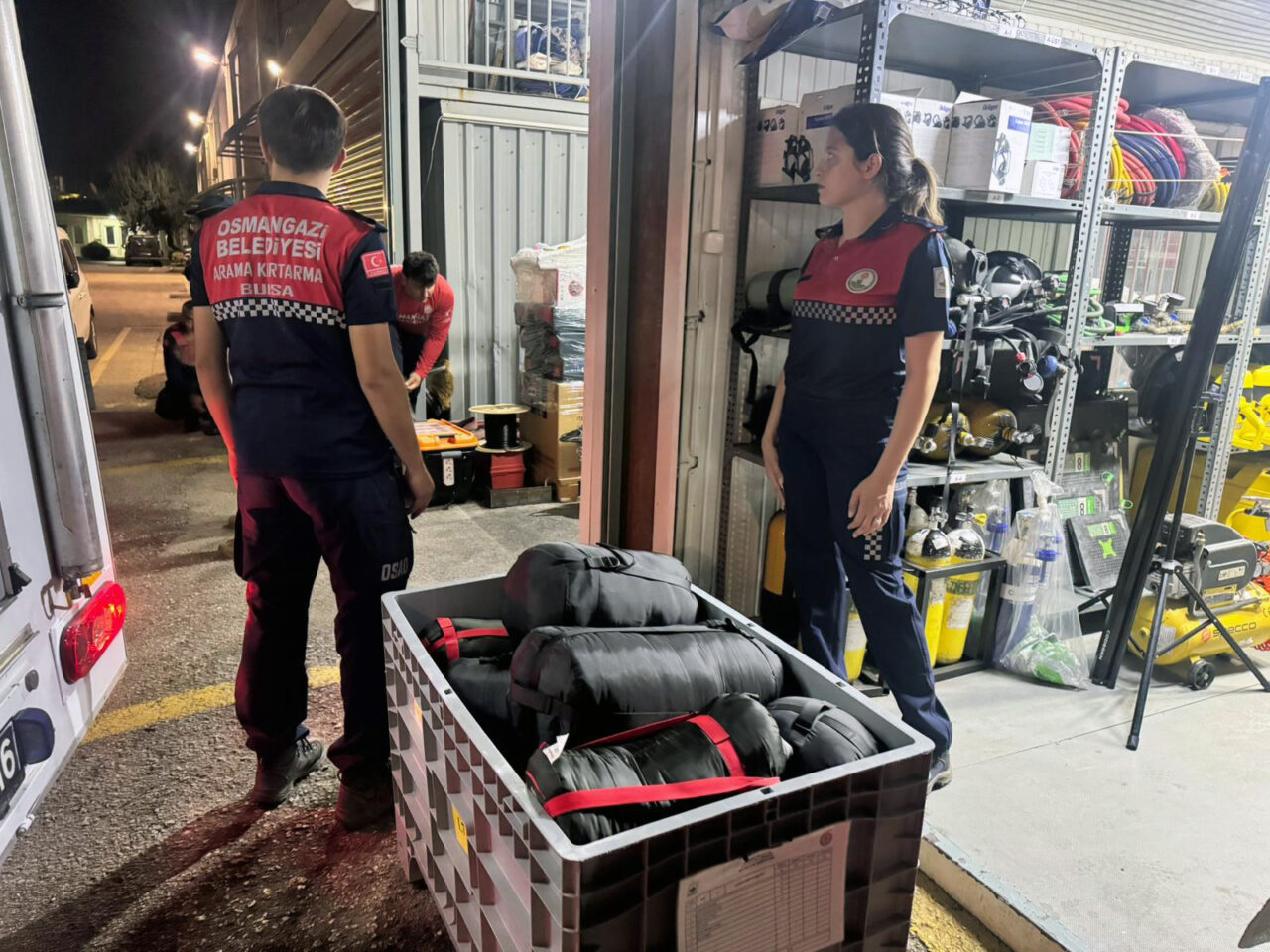 Osmangazi Belediyesi Arama Kurtarma Ekibi (OSAD), 1 köpekli arama timi, 1 arama kurtarma timi ve 3 araç ile Sındırgı’ya hareket etti. Köpekli arama timinde görevli Daisy ve Alfa, enkaz alanlarında titiz bir şekilde çalışarak arama faaliyetlerine önemli katkı sağladı.