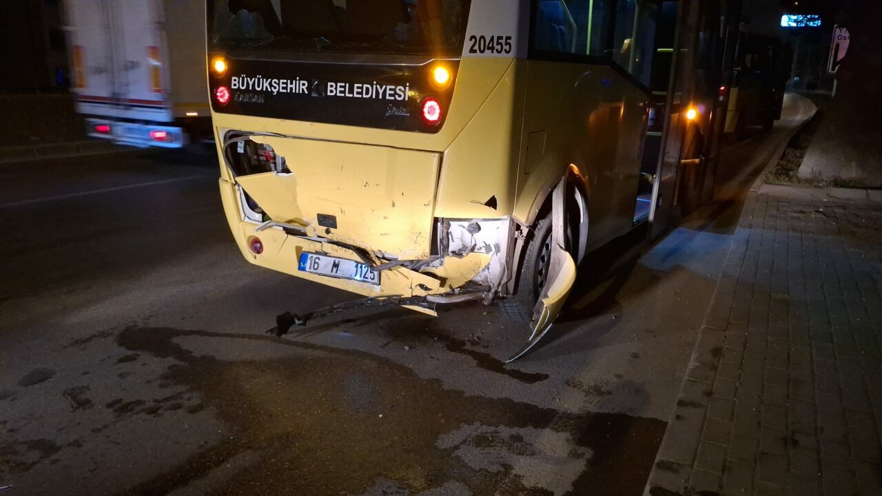 İddiaya göre, Muhammed Berat A. yönetimindeki 16 AGS 887 plakalı otomobil, merkez istikametine ilerlerken, önünde seyreden Selattin A. idaresindeki 16 M 1125 plakalı halk otobüsüne çarptı.