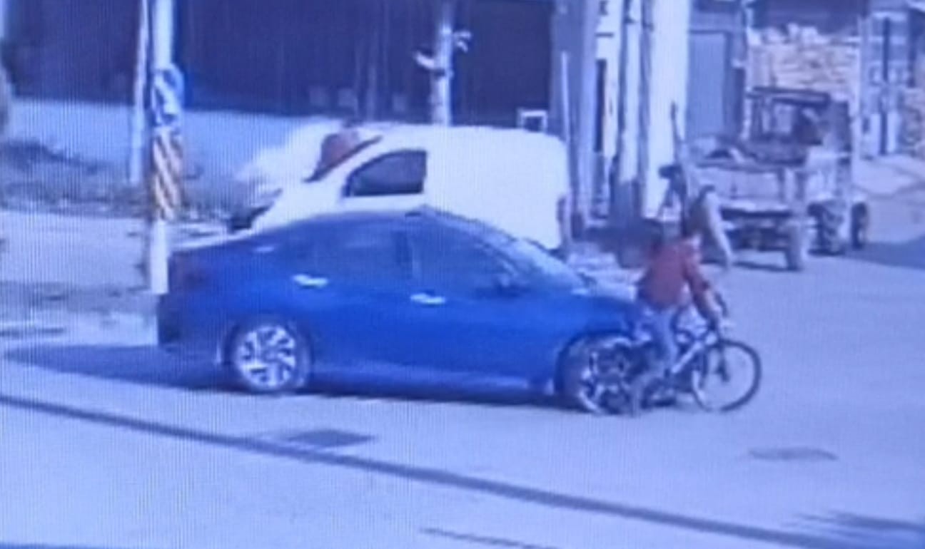 Bisiklet sürücüsünün havalandığı kaza anı bir işyeri güvenlik kameralarına saniye saniye yansıdı.