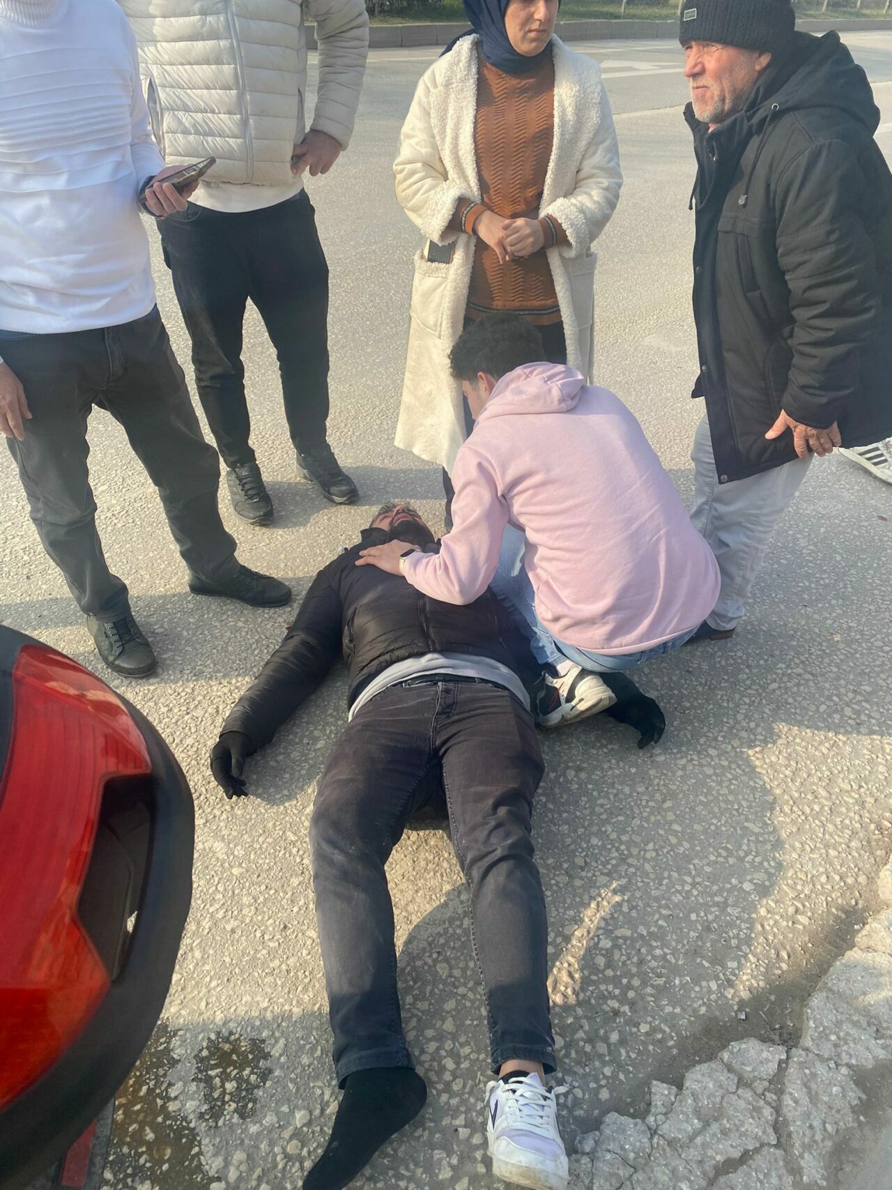 İnegöl’den Alanyurt Mahallesi istikametine giden Kadir İ. (28) yönetimindeki 16 BBF 132 plakalı elektrikli bisiklet, aynı yöne seyir halinde olup, sokağa dönüş yapmak isteyen Kadir B.’nin (26) kullandığı 16 AGP 419 plakalı otomobille çarpıştı.