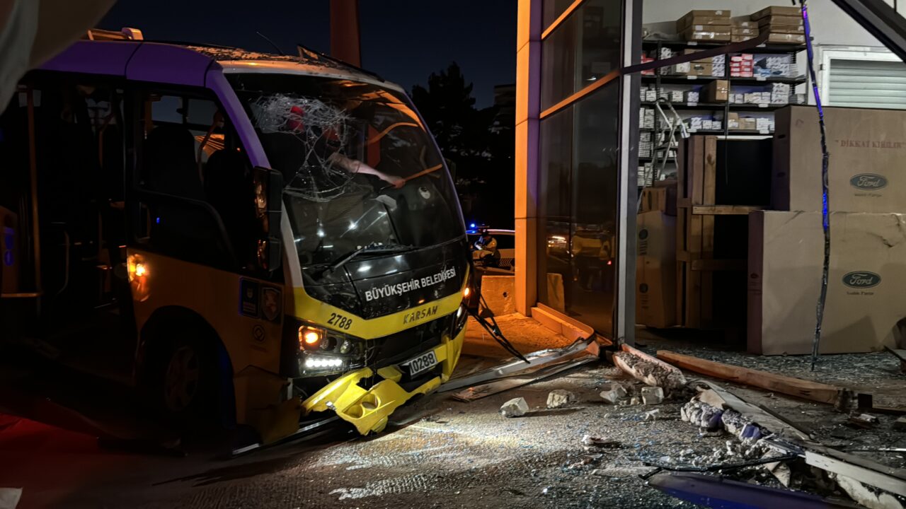 Çevredeki bir güvenlik kamerasınca kaydedilen kaza görüntülerinde, minibüsün otomobille çarpıştıktan sonra yedek parça dükkanına girmesi ve minibüsteki bir yolcunun açılan kapıdan yola düşmesi yer alıyor.