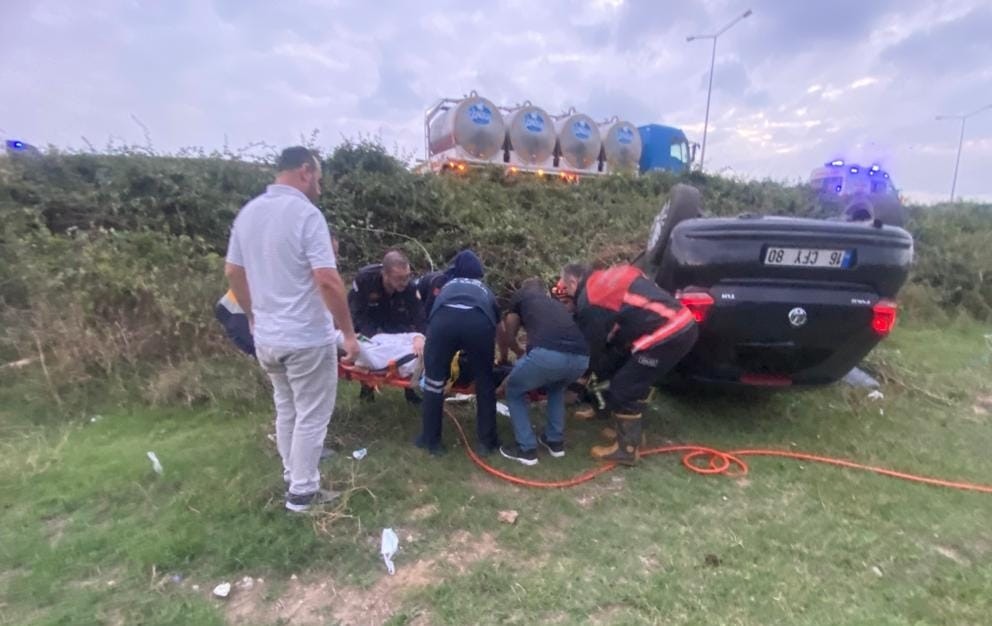 Bursa’dan İnegöl’e seyir halinde olan sürücü Fatih B. (23) yönetimindeki 16 CFY 80 plakalı otomobil, sürücüsünün kontrolünden çıktı. Yoldan çıkan araç şarampole yuvarlanarak, ters durdu.