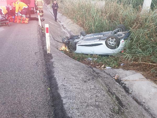 Bursa’dan Çanakkale yönüne giden Berk T. idaresindeki 16 ABJ 555 plakalı otomobil, sürücünün direksiyon kontrolünü kaybetmesi sonucu yol kenarındaki su kanalına devrildi.