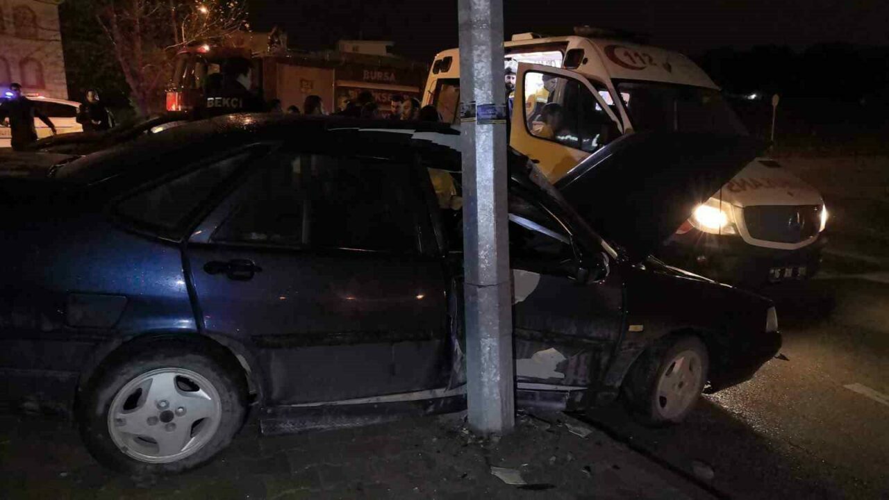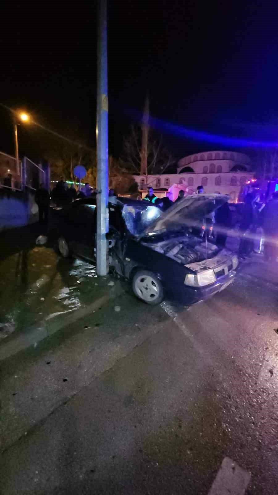 Çarpmanın etkisiyle savrulan 26 AFB 128 plakalı otomobil, aydınlatma direğine çarparak durdu.